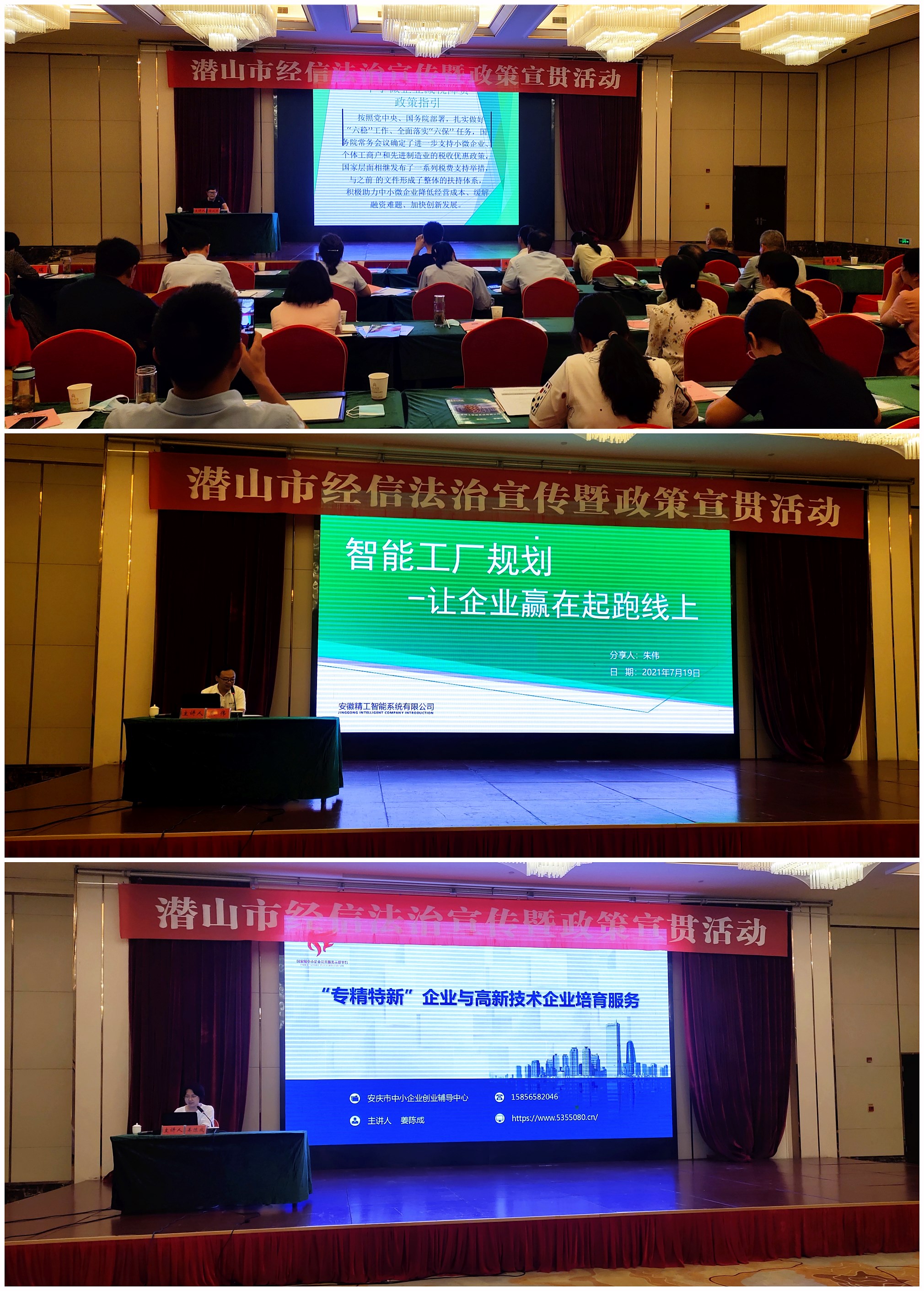 宣贯会上,我中心主任郑德秀对《关于进一步激发民营企业创业热情成就企业家创意创新创造的若干意见》进行了详细解读;中心员工分别就省民营企业政策“皖企服务云”上云用云、第六届“创客中国”安徽省中小企业创新创业大赛活动以及国家、省出台的一系列利企、惠企政策进行了全方面解读;此次宣贯活动还邀请了潜山市税务局对企业税收优惠政策进行了解读,安徽精工智能系统有限公司总经理朱伟就智能工厂规划—让企业赢在起跑线上做了专题讲座,分析企业在转型升级中遇到的困惑,以及如何落地智能制造在企业真正的实施问题,全面拉通产品端、制造端、设备端、供应端,确保产品全生命周期管理数字化、透明化,助力传统工厂向数字化工厂转型升级。